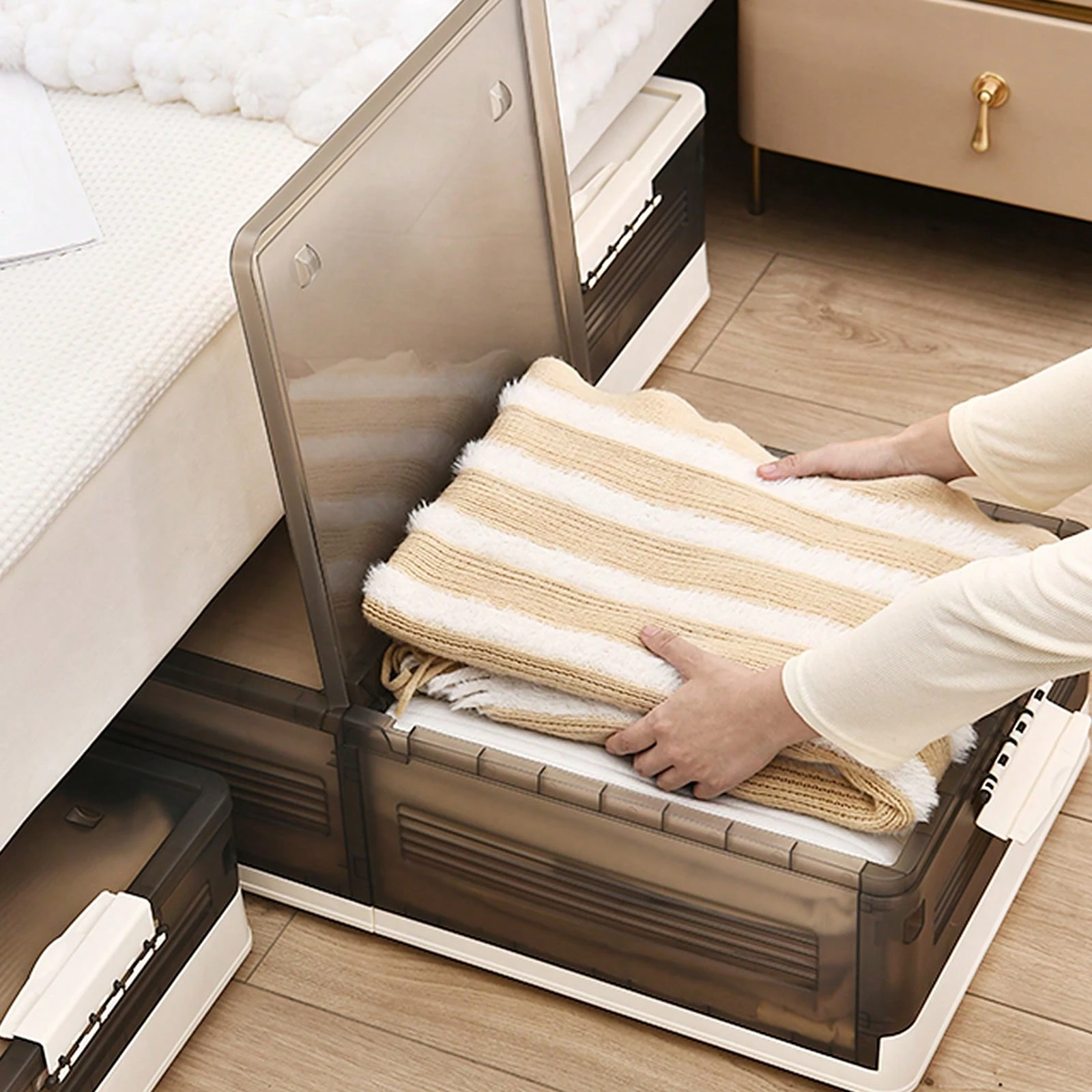 Sub pat, sub canapea, în dulap sau în hol - perfect pentru haine, pantofi, jucării, cărți sau documente.