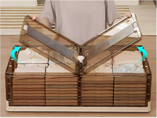 Cutiile sunt fabricate din plastic ranforsat care rezistă la umiditate, nu se îndoaie și pot rezista chiar și la încărcături mai grele. Ideale pentru lenjerie de pat, haine de sezon și jucării.