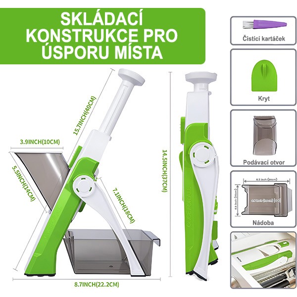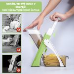 Datorită designului său multifuncțional, dispozitivul nostru poate rade, felia și tăia o varietate de fructe și legume.