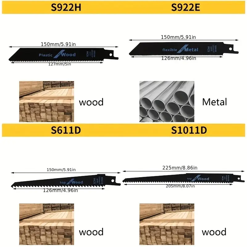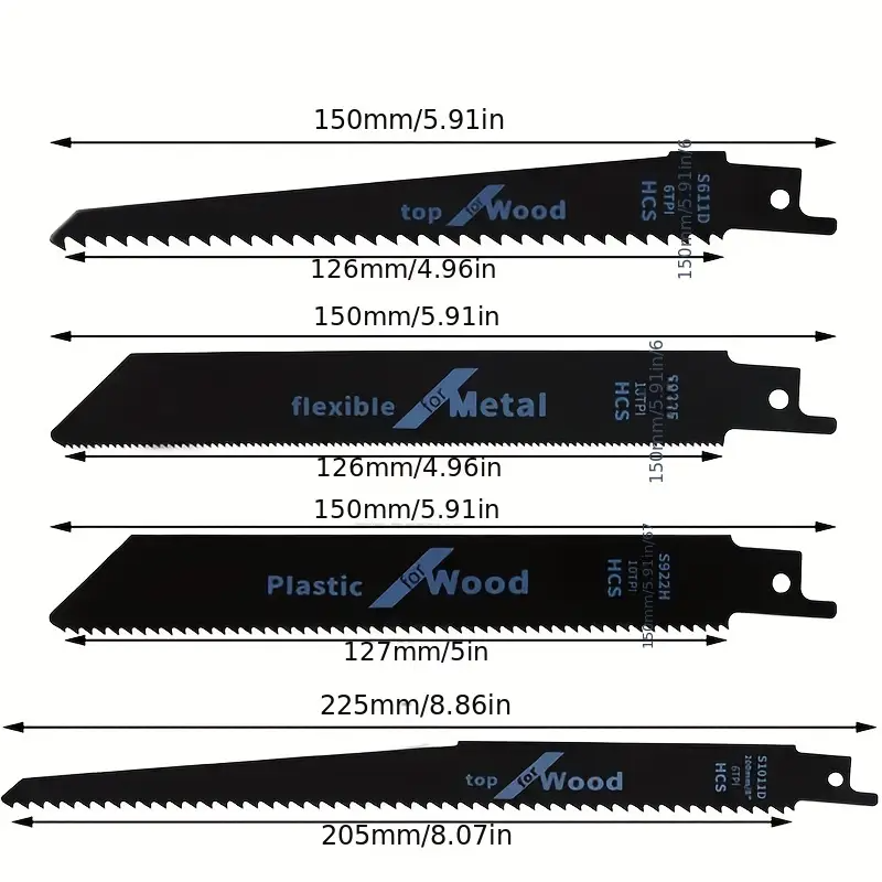 4pcs Set de lame de ferăstrău din oțel cu conținut ridicat de carbon pentru tăierea lemnului, metalului și plasticului, ferăstraie pentru lemn
