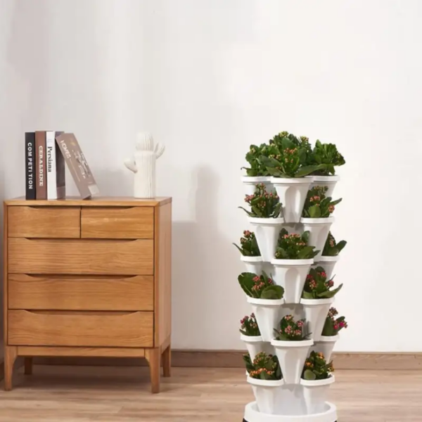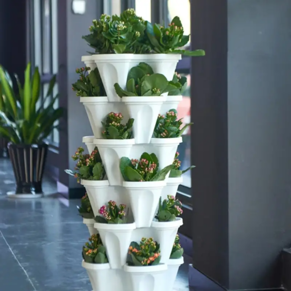 Ghivecele stivuibile servesc ca un kit excelent pentru începători pentru cultivarea căpșunilor delicioase, a florilor luxuriante și a ierburilor aromatice pentru aromatizat.