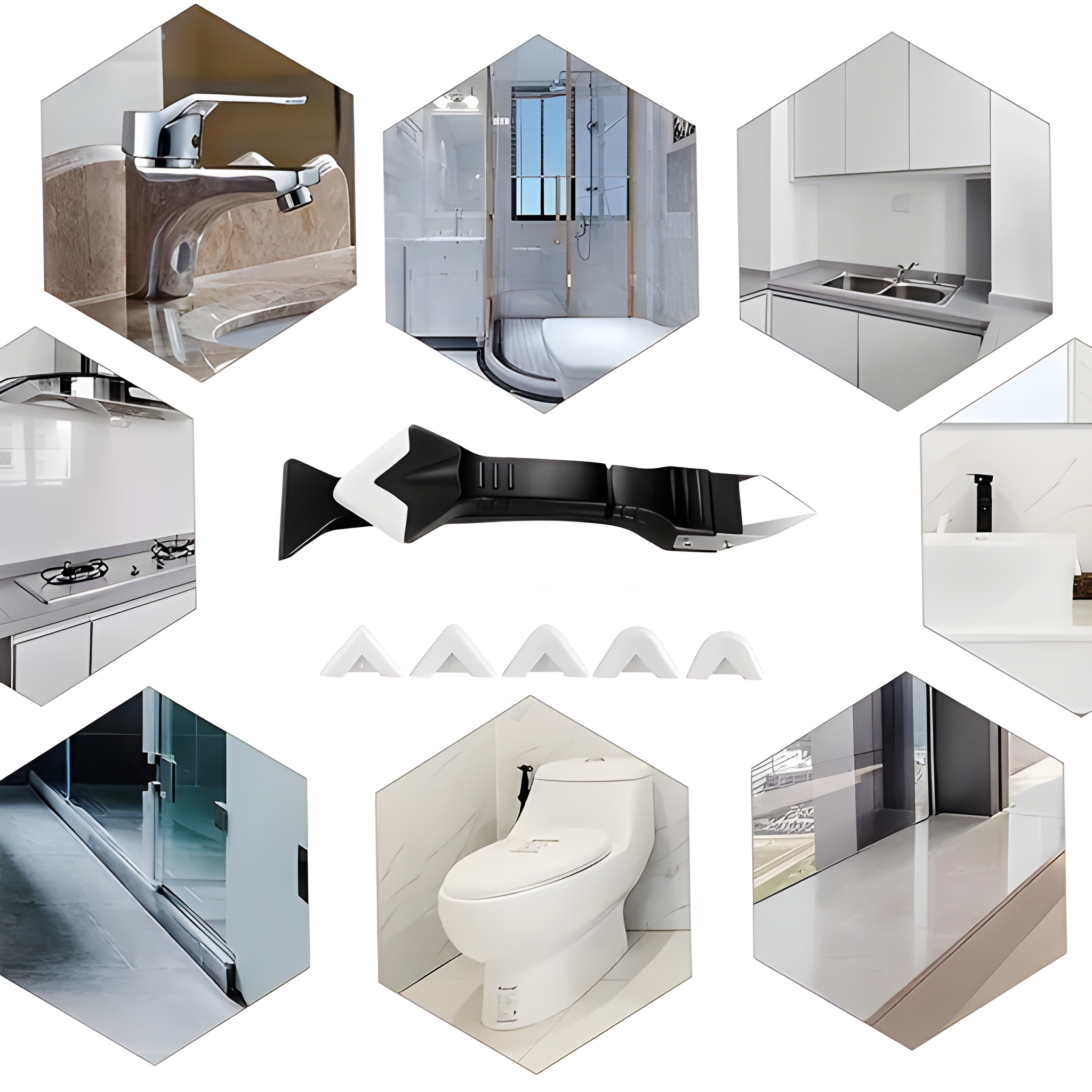 Spatula 5 în 1 este concepută pentru a ușura lucrul cu siliconul și pentru a crea finisajul perfect pentru fiecare îmbinare