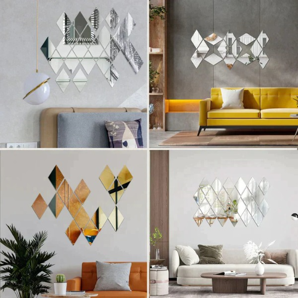 Aceste autocolante elegante reflectă lumina, făcând camera ta să pară mai luminoasă, mai mare și mai primitoare. Sunt perfecte pentru spațiile slab iluminate și creează o atmosferă plină de viață care vă va ridica starea de spirit.